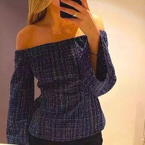 NWT ZARA Tweed Textured Off Shoulder Top Flare Sleeve 8741/257/030 Size XS