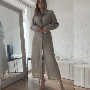 LONG SHIRT WITH LAPEL COLLAR AND LONG CUFFED SLEEVES. FRONT CLOSURE WITH CONTRAST BUTTONS.