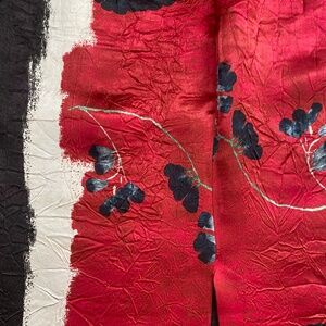 Beautiful viscose skirt- feels like silk satin! In a textured, crinkled pattern ( see photos ) back zip closure with back vent slit. Interior lining polyester. NO stretch.
