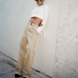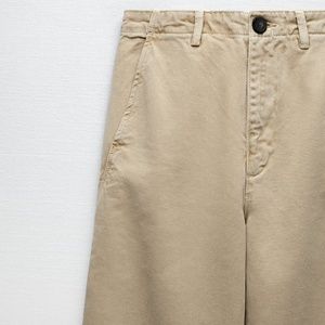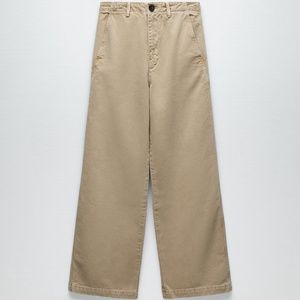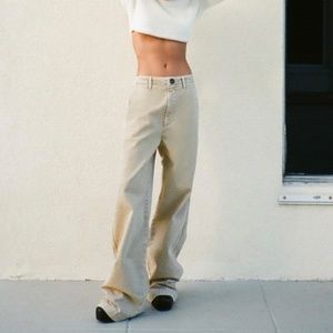 NWT ZARA WIDE LEG MID RISE LOOSE FIT PANTS Beige