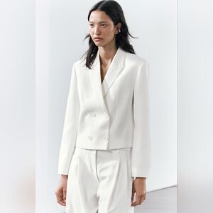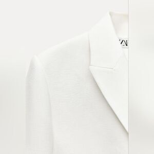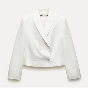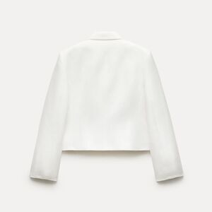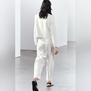 NWT ZARA WOMAN COLLECTION Cropped blazer made withโ25% linen WHITE
