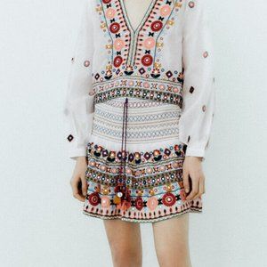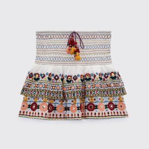 NWT ZARA WOMAN SKIRT WITH CONTRAST WITH EMBROIDERY TASSEL MIRROR WORK