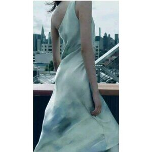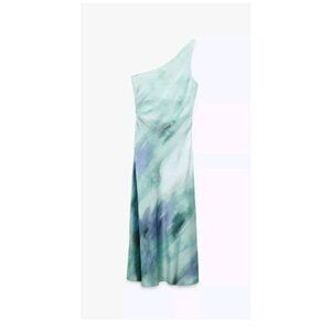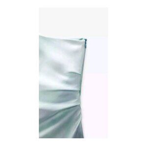 NWT ZARA WOMAN'S DRAPED SATIN EFFECT DRESS GREENS SIZE XS 7949/430