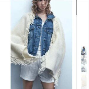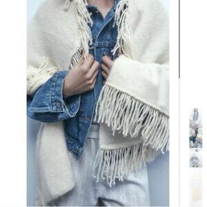 NWT ZARA WOOL ALPACA FRINGED SCARF ECRU