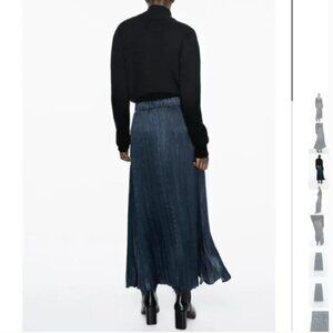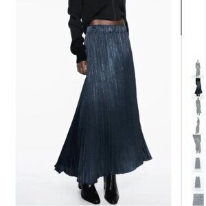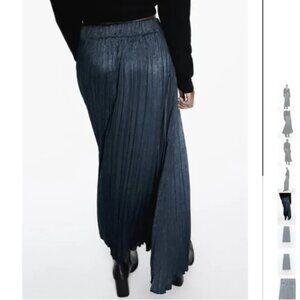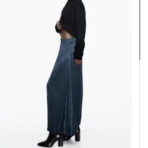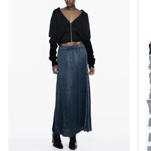 NWT ZARA WRINKLED SATIN EFFECT SKIRT PETROL BLUE