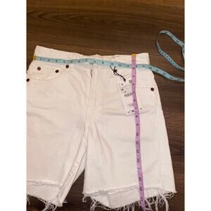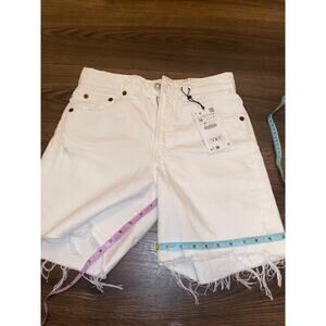 NWT ZARA White Denim Bermuda Shorts | Mid Rise Frayed Hem | Size 4 / EUR 36