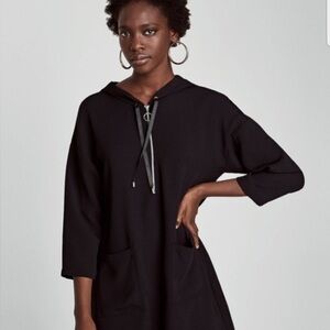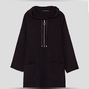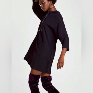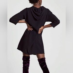 NWT ZARA Women’s Black Relaxed Hood Mini Cool Trendy Comfort Dress XS X-Small