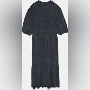 NWT ZARA Women’s Charcoal Gray Mock Neck Sweater Relaxed Midi Dress Small S
