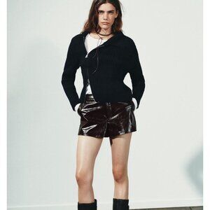 NWT ZARA Womens Size Medium Faux Leather 3” High Rise Black Shorts Goth
