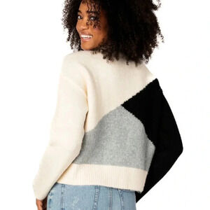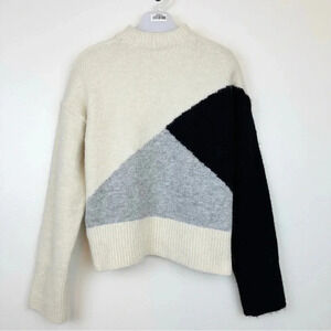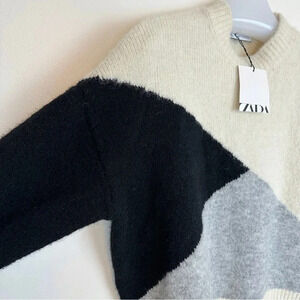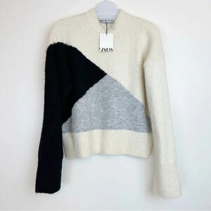 NWT ZARA Woolen Chunky Knit Cropped Color Block Sweater M