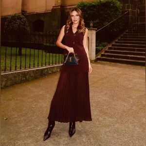 NWT ZARA ZARA NWTโWOMAN MIXED PLEATED KNIT SKIRT Burgundy