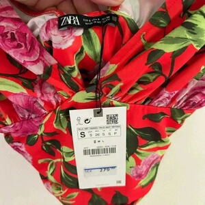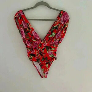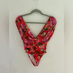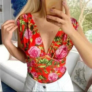 NWT ZARA floral deep plunge v neck drop short sleeve body suit