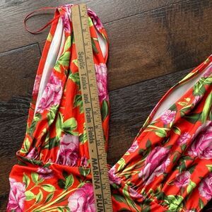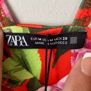 NWT ZARA floral one piece bodysuit ruched size medium orange deep v neck