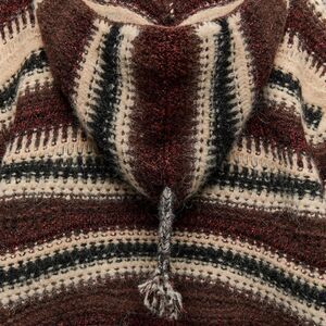Poncho sweater made of wool and alpaca blend fabric. Drawstring hood collar. Long sleeves.