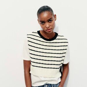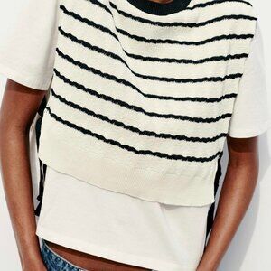 NWT ZARAContrasting White and Black Striped Shirt US Small