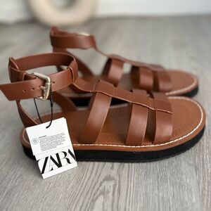 NWT ZARA LEATHER FISHERMAN SANDALS BROWN