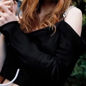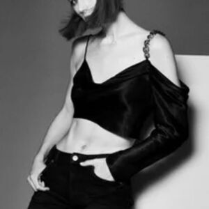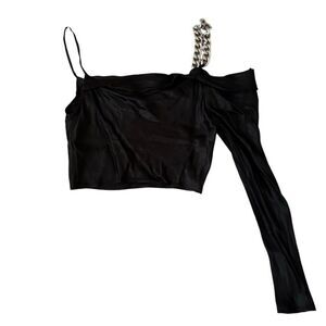 NWT ZARA Satin Crop Top Side Zipper One Shoulder Asymmetric Chain Strap Size M