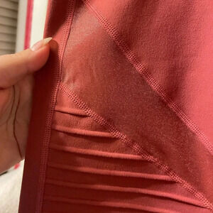 Brand new with tags. These are a terra cotta 7/8 leggings. They hit right at ankle and have mesh panels throughout. WOMENS size small.
