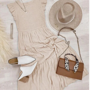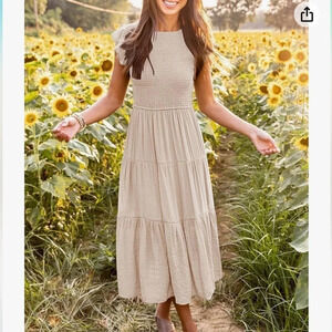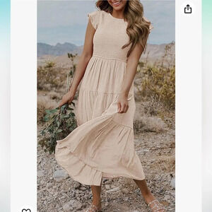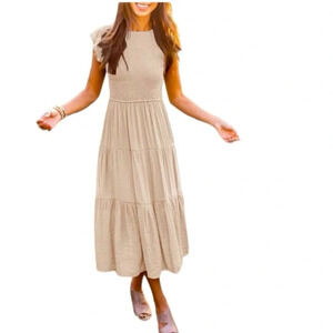 NWT ZESICA Women's Flutter Short Sleeve Smocked Midi Summer Tiered A Line Dress