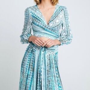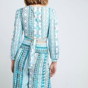 NWT ZHU Ulma Wrap Top Wide Leg Pants Set Blue XS