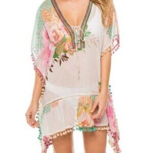 NWT Z&L EUROPE Boho Floral Pom Pom Swim Coverup/Top. SZ M