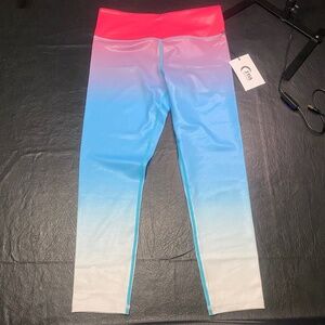 ZYIA Metilliac Firecracker Light n Tight Hi-Rise Leggings 7/8 24" (8-10). NWT. Smoke Free Home. Color: Pink, Blue & White (Ombré)