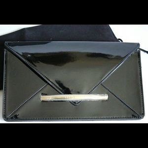 NWT Zac Posen Z Spoke Black Patent Envelope Clutch