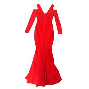 NWT Zac Posen Red Mermaid Gown Vogue Runway Dress Off Shoulder sz S (4-6)