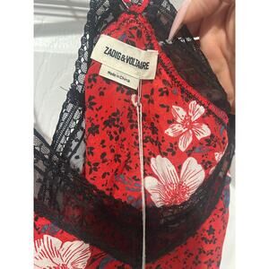 Elevate your wardrobe with this stunning NWT Zadig & Voltaire Christy camisole. Crafted from luxurious silk, this delicate top features a beautiful floral print and intricate lace trim, adding a touch of elegance to any outfit. Perfect for layering or wearing on its own, this camisole is a versatile piece for any fashion-forward woman.