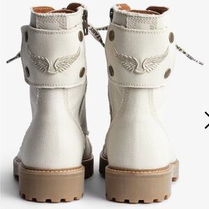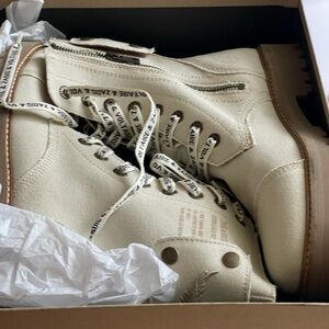 NWT Zadig & Voltaire Joe Canvas Women's Cream Combat Boots in Flash
