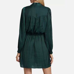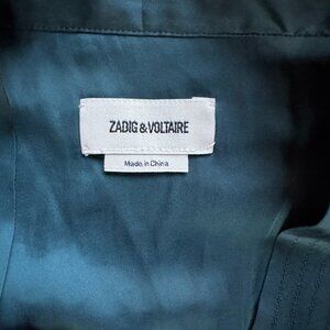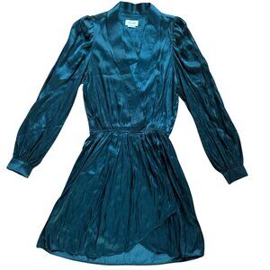 New with tag, original retail $448 Play the elegance card with this light, flowing, draped dress that will take you from day to night. - Zadig&Voltaire women's Peacock green satiny mini dress - Long buttoned sleeves - Wrap neckline - Gathered effect - Draped skirt - Fitted at the waist Composition 100% polyester Follow the washing and care instructions on the composition label sewn onto the product. Fit Tip Fits true to size. Fabric / Material 100% polyester