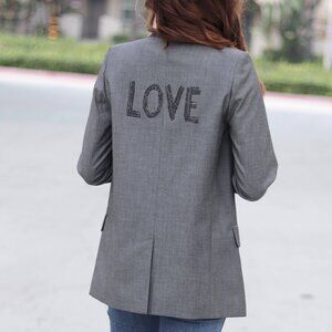 The subtle “LOVE” message on the back adds a quiet yet modern statement, balancing classic tailoring with effortless Parisian attitude.