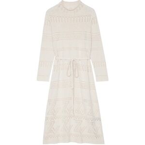 This linen and cotton dress features romantic and bohemian look, with its high neck, long sleeves and openwork ZV monogram motifs.