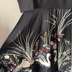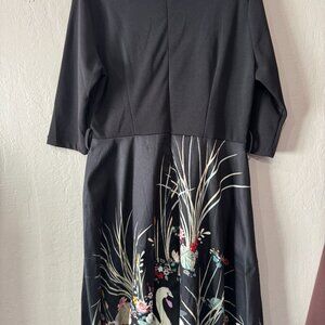 NWT Zaful Black A-line Midi Dress with Swan Pattern Size XXL