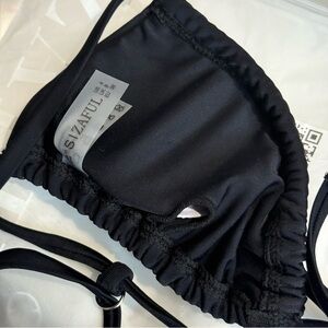 NWT Zaful Black triangle Bikini with tie front and Adjustable Straps Size S