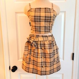 NWT Zaful Tan Plaid 2 Piece Skirt Set L