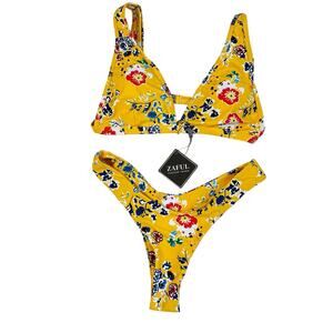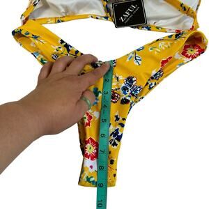 NWT Zaful Yellow Floral Brazilian Cheeky Triangle Bikini Size 6 US Medium