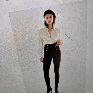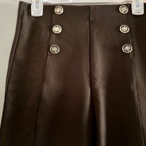 These leggings can certainly be worn as pants, but they're described as leggings. I wouldn't know, because although it says medium, it fits more like a size FOUR, so bear that in mind. But these are super cute, super trendy - and they've never been worn! I love the detailing on the gold buttons, which gives the pants a military feel - very "in" right now. They're a bit high-rise, from what I can tell, too. But I loved them, or I wouldn't have bought them. They just don't fit! GREAT FIND!!!