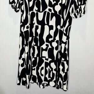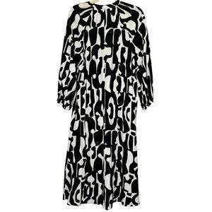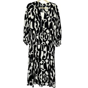 NWT Zara Abstract Print Lightweight Long Sleeve V-neck Midi Dress Black White Sm