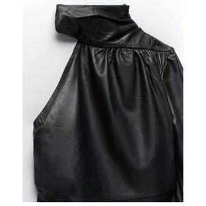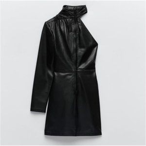 NWT Zara Asymmetric Genuine Real Leather One Sleeve Mini Dress size S