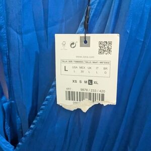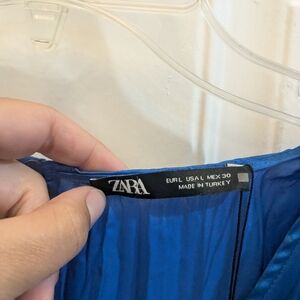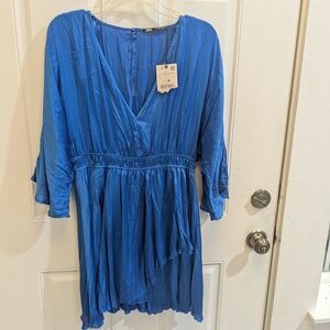 Chic asymmetrical dress by Zara. Vibrant blue with a unique silhouette. Perfect for stylish outings. Hidden shorts underneath.