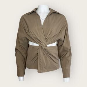 NWT | Zara | Asymmetrical Twist Front Blouse | Taupe | Size S