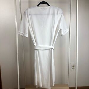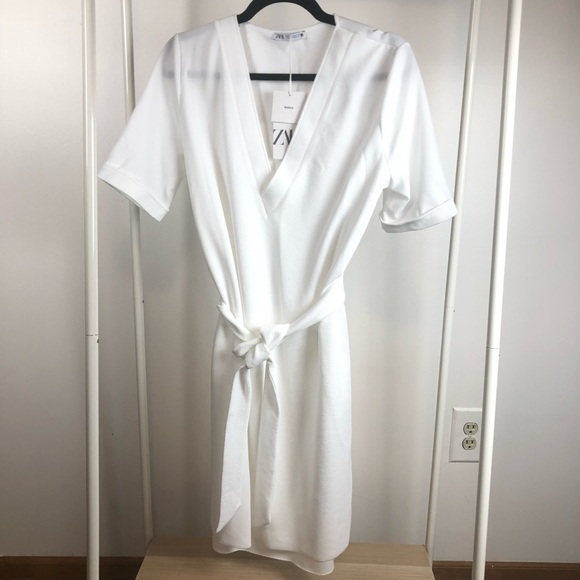 This brand new Zara Basic white short sleeve shift dress has V neck style with a waist tie.