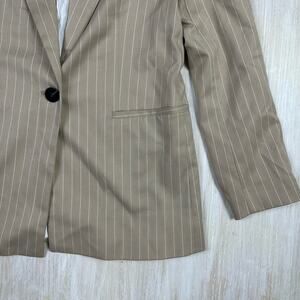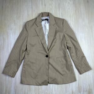 NWT Zara Beige Pin Stripe One Button Notch Lapel Trendy Chic Blazer Jacket Small