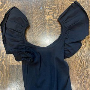 NWT Zara Black Bodysuit with Ruffle sleeve USA Small