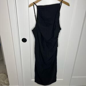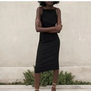 NWT Zara Black Draped Detail High Neck Midi Dress Size XL