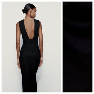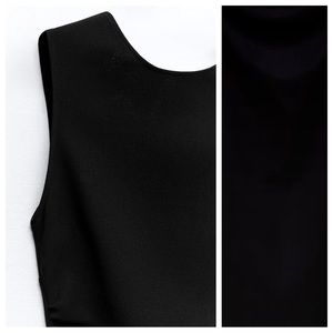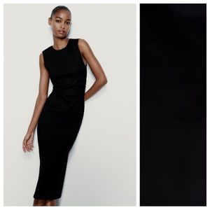 NWT. Zara Black Draped Side Fitted Midi Dress with round neckline, sleeveless, side ruched detail. Size XL. Ref. 2712/460. Pit to pit 18" flat, shoulders 15", waist 15", length 50". U