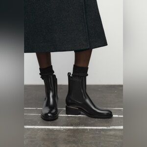 NWT. Zara Black Faux Leather Ankle Boots with Metallic Plate. Size 10.