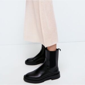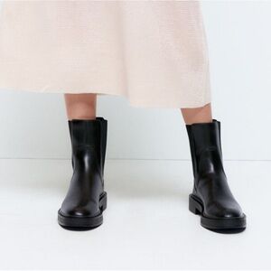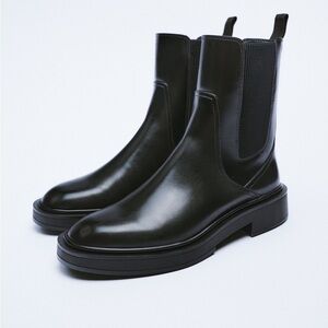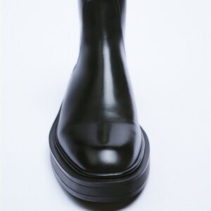 NWT. Zara Black Faux Leather Chelsea Ankle Boots. Size 7,5