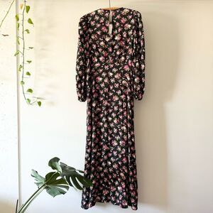 NWT. Zara Black Floral Print Midi Dress. Size S